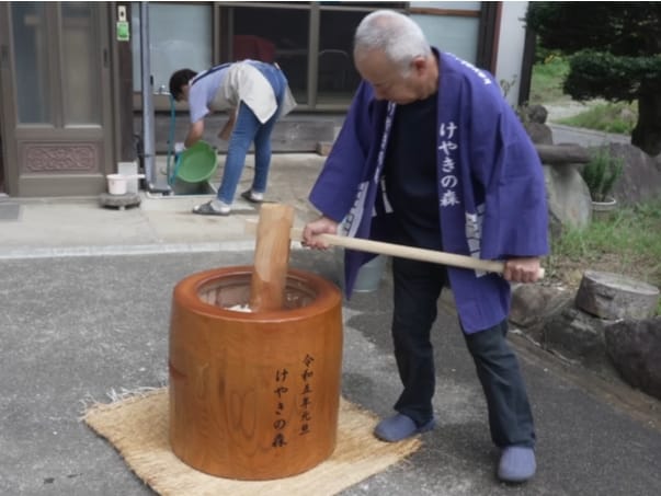 Il ressemble a un tonneau et n’a généralement pas de motif rugueux dans son bol comme le suribachi. Il faut deux personnes pour utiliser un usu, et son pilon est un maillet qu’il faut manier dans un timing précis pour éviter les blessures. Le usu sert, entre autres, à préparer les célèbres mochis (もち, 餅 ), des gâteaux composés de riz gluant aux grains courts. Un aliment traditionnel du Nouvel an japonais, préparé lors d’une cérémonie appelée mochitsuki (餅搗き).