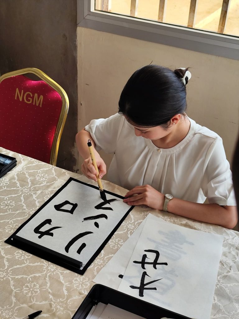 3) – La calligraphie japonaise a déployé ses idéogrammes sophistiqués, savamment étalés sur un délicat papier de riz (beaucoup sont rentrés avec leur prénom écrit en kanjis).